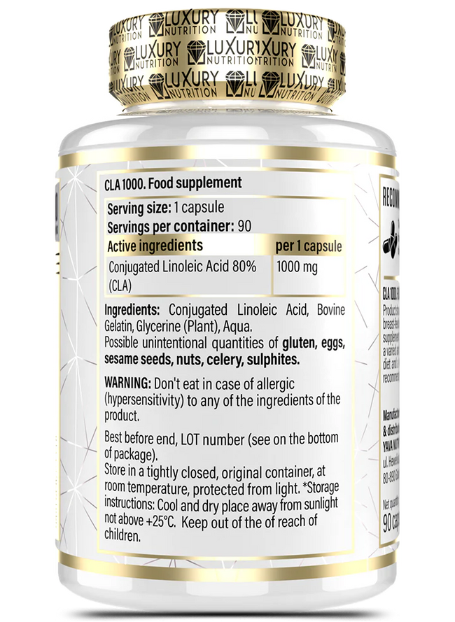 اكتشف فوائد CLA 1000 من لكسوري نيوترشن، مكمل غذائي عالي الجودة مصمم لدعم أهداف إدارة الوزن وتعزيز تكوين جسم أكثر صحة. تركيبتنا عالية الفعالية توفر 1000 ملغ من حمض اللينوليك المترافق (CLA)، وهو حمض دهني أساسي ثبت علمياً أنه يساعد في تقليل الدهون في الجسم مع الحفاظ على كتلة العضلات الخالية من الدهون. احتضن قوة CLA 1000 وابدأ رحلتك نحو جسم أنحف وأكثر صحة.