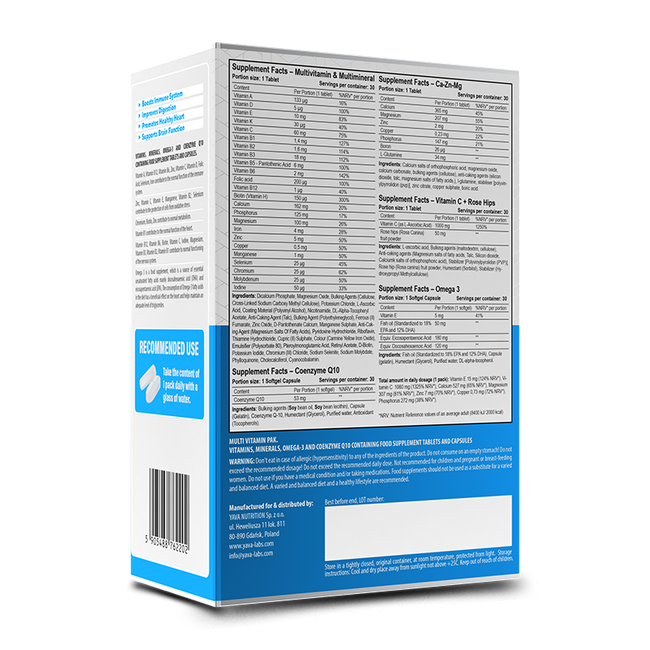 مولتي باك ليس مجرد مكمل غذائي عادي. تجمع هذه الصيغة القوية بين فوائد الفيتامينات والمعادن وأوميغا 3 والكو إنزيم Q10 لتوفير دعم غذائي شامل لك. هو مثالي لأولئك الذين يعيشون نمط حياة نشط، وهو مصمم بخبرة لدعم وظيفة المناعة، وتعزيز الهضم، والحفاظ على صحة القلب، وتعزيز وظيفة الدماغ الأمثل. مصنوع بعناية، يحتوي مكملنا المتعدد على العناصر الغذائية التي يحتاجها جسمك للنجاح، مما يجعله إضافة أساسية إلى نظامك الغذائي اليومي.