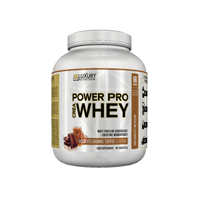 مركز بروتين مصل اللبن (حليب)، كرياتين أحادي الهيدرات، نكهة، مستحلبات: كربوكسي ميثيل سلولوز، ليسيثين عباد الشمس، مكثفات: صمغ الغوار، ملح، محليات: سكرالوز، أسيسولفام ك، ملون: بني HT.